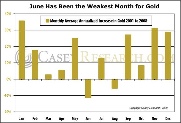 In our current 8-year bull market, June has seen the lowest return for gold. In other words, it’s been, on average, one of the best times to buy.